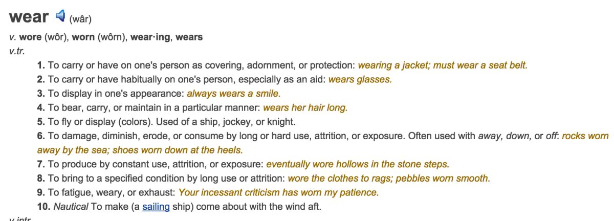 Wear is related to interactions between surfaces and specifically the removal and deformation of material on a surface as a result of mechanical action of the opposite surface. The need for relative motion between two surfaces and initial mechanical contact between asperities is an important distinction between mechanical wear compared to other processes with similar outcomes.