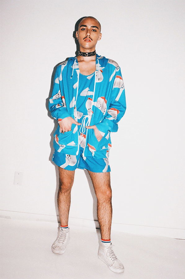 Focusing heavily on detailing and layering, Green mixed fabrics and finishes to create an interesting visual. This, combined with covered faces, ultimately lifted the entire collection and resulted in an alluring display of talent and skill: