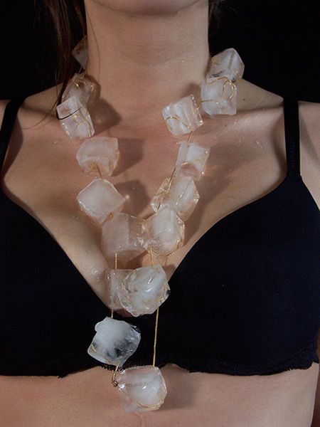In order to make a jewelry which can be see through also included cedar wood oil as well as combine Naomi Filmer’s style together, the idea of using ice has come to my mind, so, I searched some photographs of ice jewelry to inspire myself.