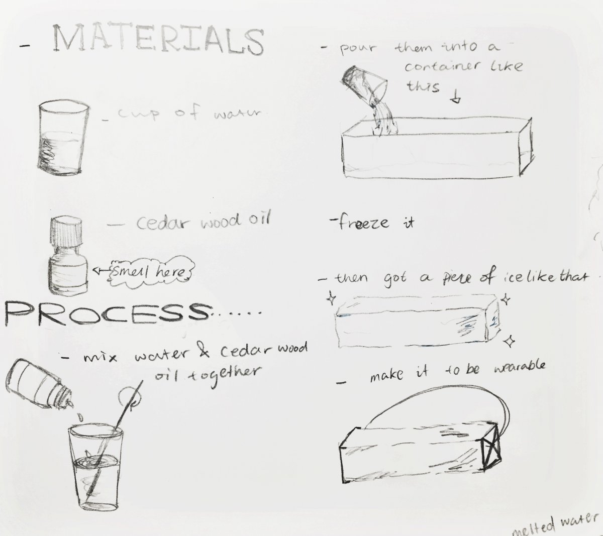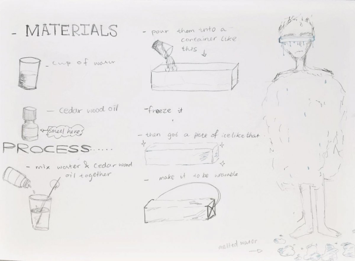 Let’s thinking about wood in some other ways, such as the smelling of wood can be part of wood too, the smelling of wood is peaceful, when i feel anxious, the woody smell can make me fell better, so in my design, instead of using the real wood, i decided to use the smelling of wood within my design, as it is much more powerful than wood, and it will not be limited as i can only use wood, but i can use the smelling of wood as well.